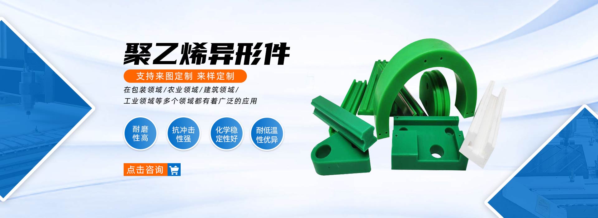 主要生產防滑鋪路板、仿真溜冰板、超高分子量聚乙烯板內襯、塑料托輥、聚乙烯砧板等;異形件、支腿墊塊、防輻射板等
